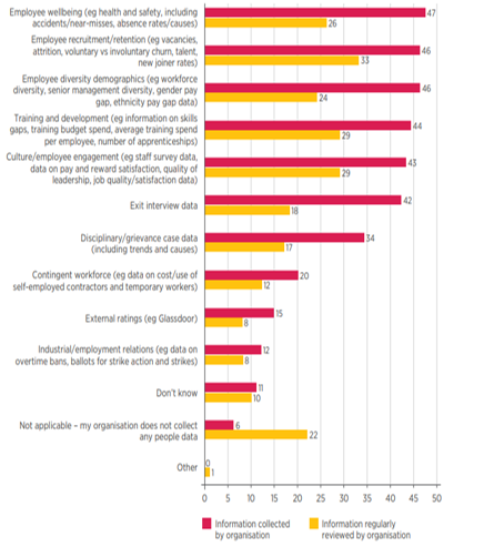 The types of people metrics, data collected and data reviewed (% of respondents)
